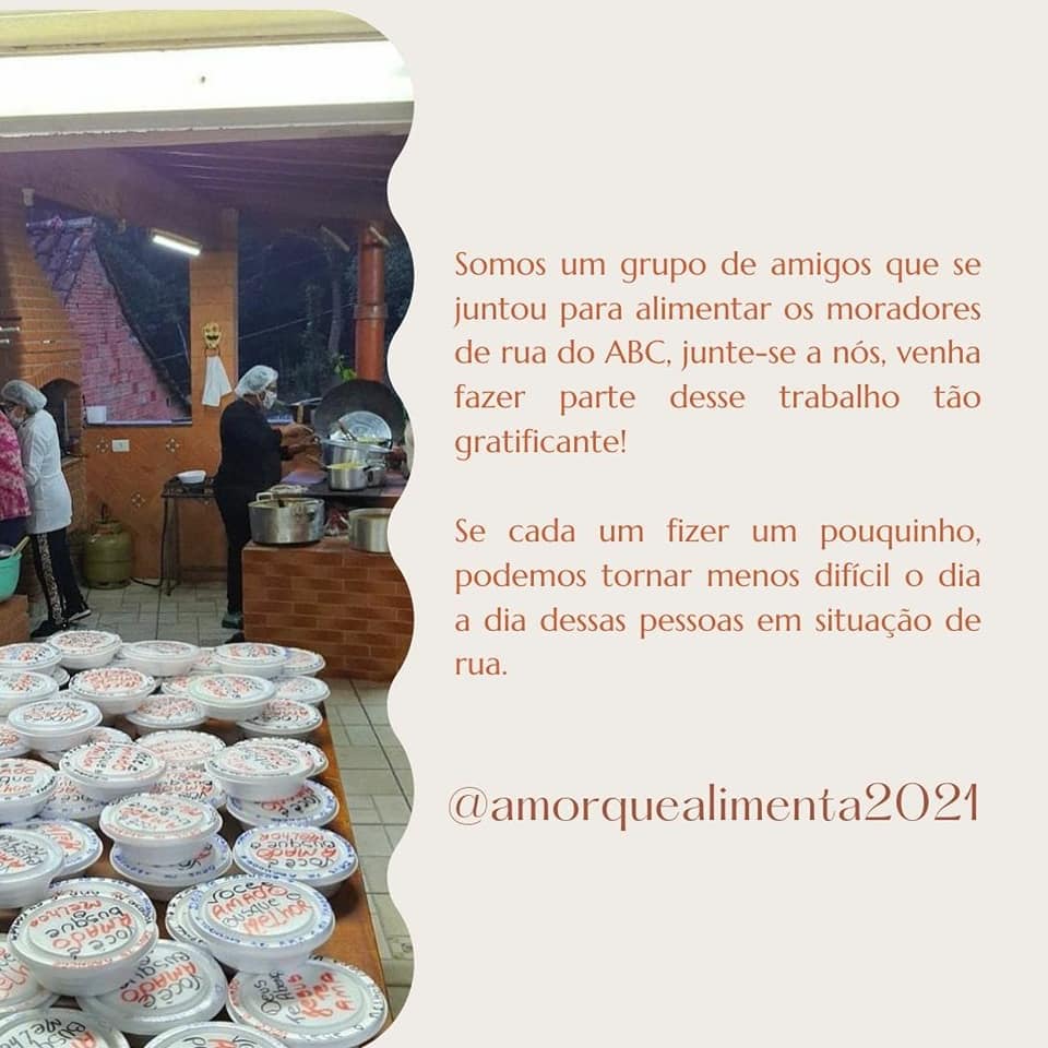 Nos ajude a levar comida aos nossos irmãos em situação de rua, se envolva nessa ação e seja mais um doador. *Amor que alimenta"